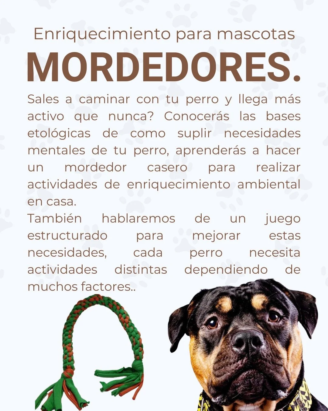 The class will be led by Daniela Henao Ruso, a canine ethology specialist, who will share the basics of dog behavior and how to respond to their mental and emotional needs through simple activities you can do at home.